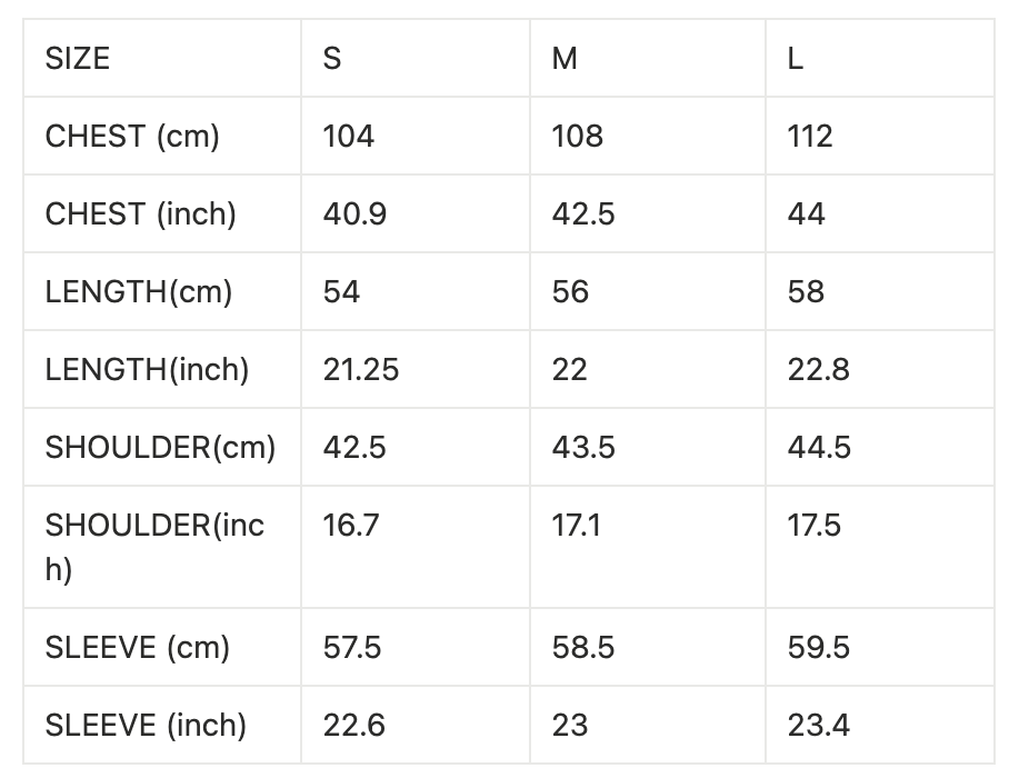 size chart